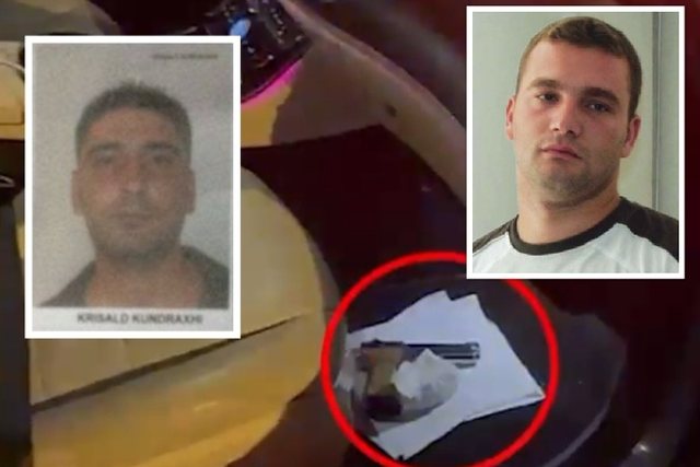 Gjatë ndalimit të automjetit ku udhëtonte Kundraxhi së bashku me pasagjerin J. K., policia kreu kontroll fizik dhe më pas kontroll në banesën e tij. Në pronësi të 38-vjeçarit u gjetën një armë zjarri pistoletë, municion luftarak, 304 gramë lëndë narkotike kokainë, rreth 131 tableta ekstazi, 3 peshore elektronike dhe pjesë arme.