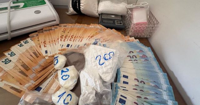 Policia, pas monitorimit të vazhdueshëm, bastisi apartamentin dhe sekuestruan mbi 1 kg drogë, përfshirë kokainë dhe ketaminë, të paketuar për shitje me pakicë. Banesa ishte e pajisur me peshore precize, qese për paketim, fletë alumini dhe materiale të tjera për përgatitjen e drogës.