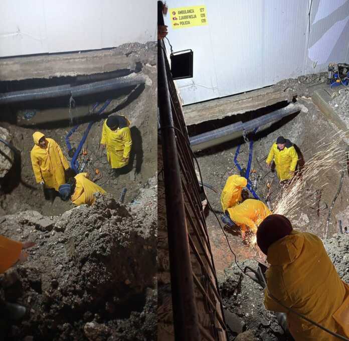 Puna për riparimin e një avarie të rëndë në linjën kryesore të furnizimit me ujë në lagjen “10 Korriku” në Vlorë vijon pa ndërprerje.