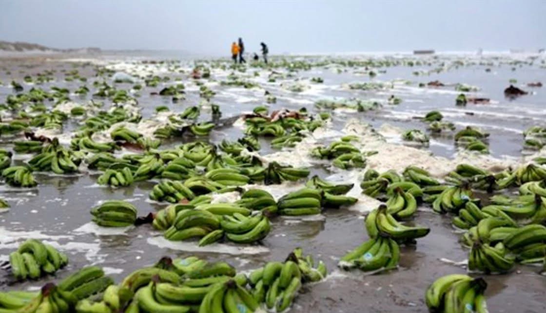 Kontejnerët e përmbysur kanë çuar në shpërndarjen e mijëra bananeve në plazhet e zonës, ndërsa mbetjet e tjera – kryesisht polistiren – kanë ndotur linjën bregdetare.
