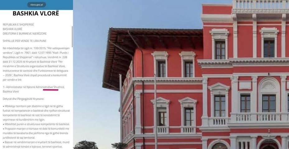 Sipas njoftimit zyrtar të Drejtorisë së Burimeve Njerëzore, bëhet fjalë për vendin e punës si administrator në Njësinë Administrative Shushicë, ndërsa është publikuar gjithashtu edhe një tjetër pozicion për administrator në Rajonin 5.