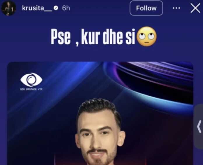 Pas përjashtimit të papritur të Kristi Lamajt nga “Big Brother VIP Albania”, banorja Krusita, me të cilën ai kishte krijuar një lidhje të ngushtë brenda shtëpisë, ka reaguar për herë të parë publikisht. Në një postim në rrjetet sociale, ajo shkroi thjesht: “Pse, kur dhe si”, duke shfaqur tronditjen dhe paqartësinë ndaj vendimit të produksionit.