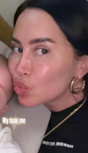 Këngëtarja Dafina Zeqiri ka ndarë një moment të ëmbël me ndjekësit e saj në Instagram Story, ku shihet duke puthur djalin e saj Daskan, i cili lindi në korrik 2025. Mbishkrimi “My mini me” tregon qartë se vogëlushi ka marrë tiparet e nënës së tij.