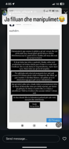 Deklarata shkon më tej duke akuzuar produksionin për të fshehur ngjarjen pas një “rastësie”: “Faleminderit nga zemra të gjithève qü më votuat dhe më perkrahet kag shume gjatě gjithe ketyre diteve.