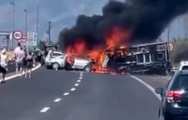 Sipas një dëshmitari okular, gjithçka ndodhi në pak sekonda kur një kamion u përplas me dy makina, duke i shkatërruar dhe përfshirë në zjarr. Pamjet dhe skenat ishin makabër, ndërsa brenda automjeteve ndodheshin viktimat, të cilat nuk arritën të dilnin.