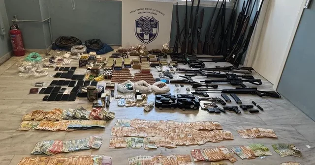 Autoritetet greke kanë goditur një organizatë kriminale në ishullin e Kretës, ku 49 persona janë vënë në pranga. Mediat lokale kanë publikuar foto nga dhoma ku u sekuestruan armë të ndryshme, kryesisht pushkë gjuetie dhe luftarake, pistoleta, municione, pjesë dhe këllëfe armësh, kartëmonedha euro, telefona celularë, si dhe pako me drogë.