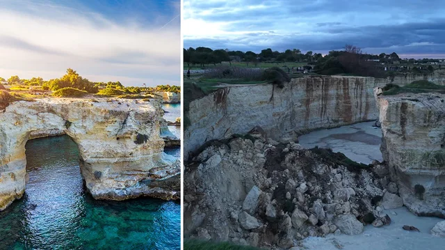 Një nga ikonat natyrore më të njohura të bregdetit të Adriatikut, harku shkëmbor në Sant’Andrea di Melendugno, i njohur si “harku i të dashuruarve”, u shemb në Ditën e Shën Valentinit pas reshjeve të dendura dhe detit të trazuar që goditën Italinë jugore.