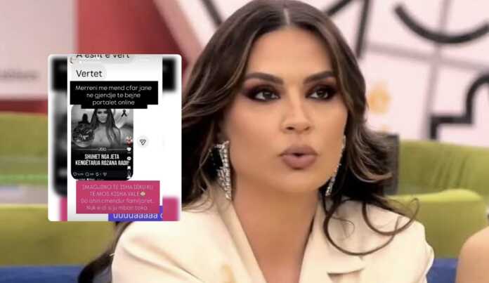 Një lajm i pavërtetë që qarkulloi në rrjetet sociale, ku pretendohej se këngëtarja dhe moderatorja Rozana Radi kishte humbur jetën, ka shkaktuar konfuzion dhe shqetësim të menjëhershëm te publiku.