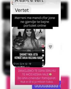 Vetë artistja reagoi shpejt përmes Instagramit, duke e përgënjeshtruar lajmin dhe duke publikuar pamjet e postimit të rremë në “InstaStory”. Me tone ironike, ajo kritikoi portalet që përhapin dezinformim për klikime, ndërsa theksoi edhe pasojat që këto lajme mund të kenë.