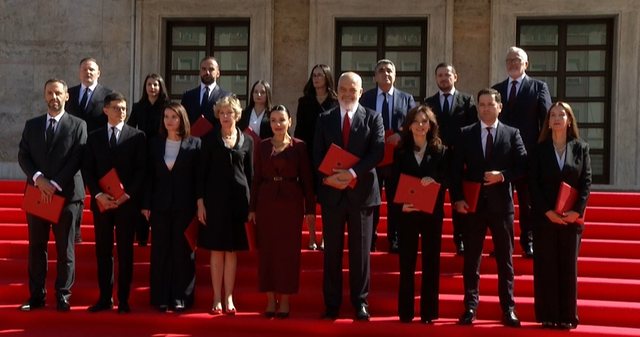 Pas ceremonisë së betimit në Presidencë, kryeministri Edi Rama dhe ministrat e qeverisë së re përshkuan në këmbë rrugën drejt Kryeministrisë, ku u zhvillua mbledhja e parë e kabinetit.