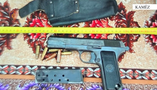 Policia e Kamzës ka arrestuar në flagrancë një 51-vjeçar, i cili mbante armë zjarri pa leje në banesën e tij.