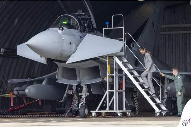 Pamjet tregojnë princeshën duke u ngjitur dhe më pas duke zbritur shkallët anësore të një avioni luftarak Typhoon, me taka të larta, pa humbur asnjë çast ekuilibrin. Videoja, e shpërndarë gjerësisht në rrjete sociale, u shoqërua me komente si: “Duket si një sfilatë mode e lartë” dhe “E pamundur ta bësh këtë me atlete, e lëre më me ato taka”.