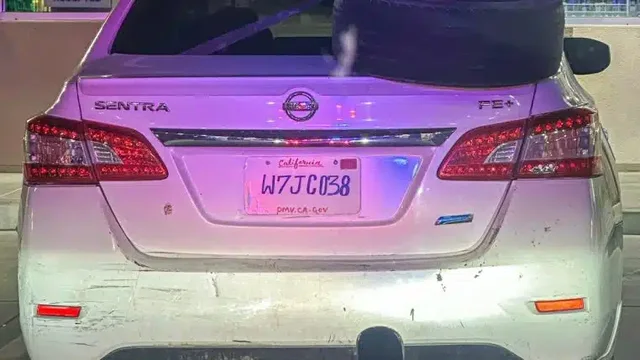 Në vend të targës standarde të lëshuar nga shteti, drejtuesja kishte vendosur një version artizanal, të shkruar me dorë dhe të ngjitur në pjesën e pasme të automjetit. Targa përmbante numrin identifikues të mjetit dhe mbishkrimin “California”, duke imituar pamjen e një targe origjinale, por me elementë të paplotë dhe qartazi të improvizuar.