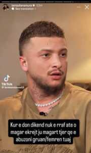 “Kur e don dikë, nuk e rraf atë o magar, e krejt ju magarë tjerë që e abuzoni gruan/femrën tuaj,” – shkroi ajo, duke ndarë edhe një pjesë nga intervista e reperit.