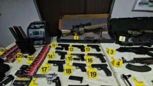 Hetuesit zbuluan gjithashtu bazën ku ruheshin armët, në të njëjtën zonë ku u kap automjeti, në Myslym Shyri. Armët janë të reja dhe nuk lidhen me rastet e mëparshme të trafikut të armëve të zbuluara. Policia po vijon punën për identifikimin e personave të tjerë të përfshirë në rrjet.