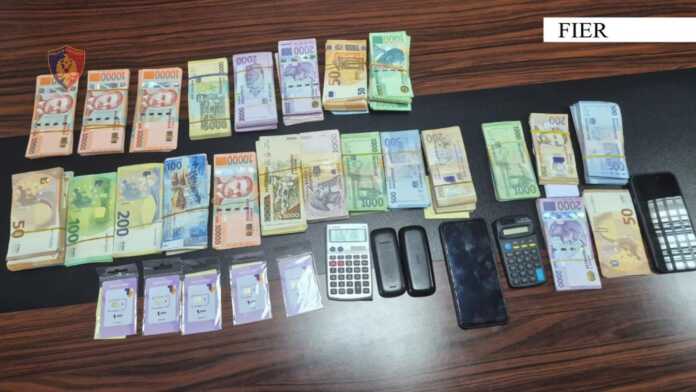 Gjatë kontrolleve fizike dhe atyre në banesa, policia sekuestroi shuma të konsiderueshme parash në valuta të ndryshme: 4.2 milionë lekë, 17.300 euro, 1.400 paund, 300 dollarë, 200 franga dhe 2.500 korona, si dhe 5 celularë që dyshohet se përdoreshin në aktivitetin e paligjshëm.