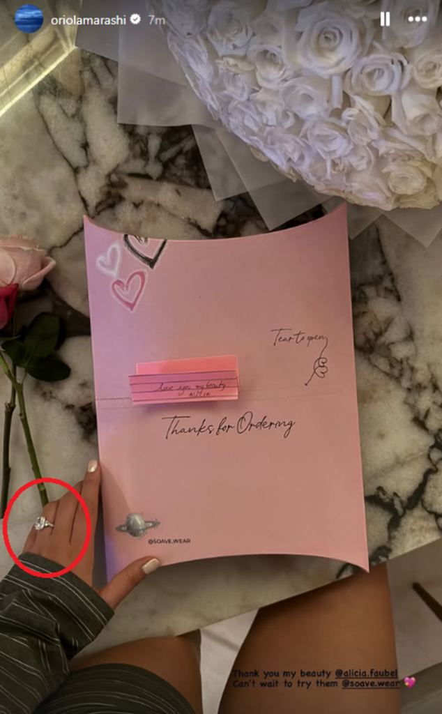 Ndërkohë që identiteti i mashkullit që i ka fituar zemrën mbetet i panjohur, Oriola duket se është në një periudhë të re dhe emocionuese të jetës së saj. Nuk ka pasur asnjë deklaratë nga modelja nëse unaza është një propozim për martesë, por ky detaj ka shtuar dyshime nëse Oriola ka vendosur të kalojë në një kapitull të ri dhe të heqë dorë nga beqarësia.