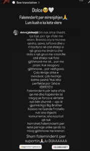 Nga ana tjetër, Olsa Muhameti nuk ka reaguar drejtpërdrejt ndaj akuzave. Megjithatë, ajo ka ripostuar një “story” të Dolces, një tjetër ish-banore e eliminuar në gjysmëfinale, e cila falënderonte produksionin dhe producenten për “përvojën unike” dhe publikun për mbështetjen.