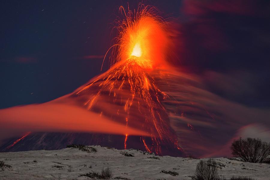 Shërbimi Gjeofizik i Akademisë Ruse të Shkencave njoftoi në Telegram se nga shpati perëndimor i vullkanit është duke rrjedhur lavë e nxehtë, ndërsa shpërthime të vazhdueshme shoqërojnë ndriçimin e fortë që shfaqet mbi krater.