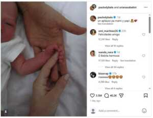 Futbollisti Paulo Dybala dhe partnerja e tij, Oriana Sabatini, festojnë lindjen e fëmijës së tyre të parë. Vogëlushja, e cila erdhi në jetë disa ditë më herët se data e parashikuar, 11 mars, lindi më 2 mars 2026, në orën 08:57, në spitalin “Gemelli” të Romës.