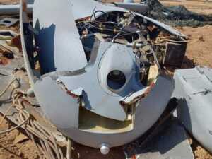 Pamjet e publikuara nga ushtria iraniane tregojnë mbetjet e copëzuara të dronit, të shpërndara në një zonë shkretinore pranë Isfahanit, sipas raportimit të Skynews.