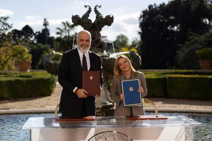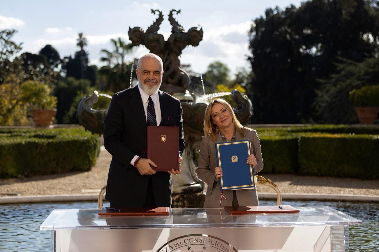 Shqipëria dhe Italia zhvilluan dje në Romë mbledhjen e parë të përbashkët midis dy qeverive, një hap historik në forcimin e partneritetit strategjik dypalësh. Kryeministri Edi Rama u prit në ceremoninë zyrtare nga Kryeministrja italiane, Giorgia Meloni, në rezidencën historike Vila Doria Pamphilj, ku u zhvillua edhe mbledhja.