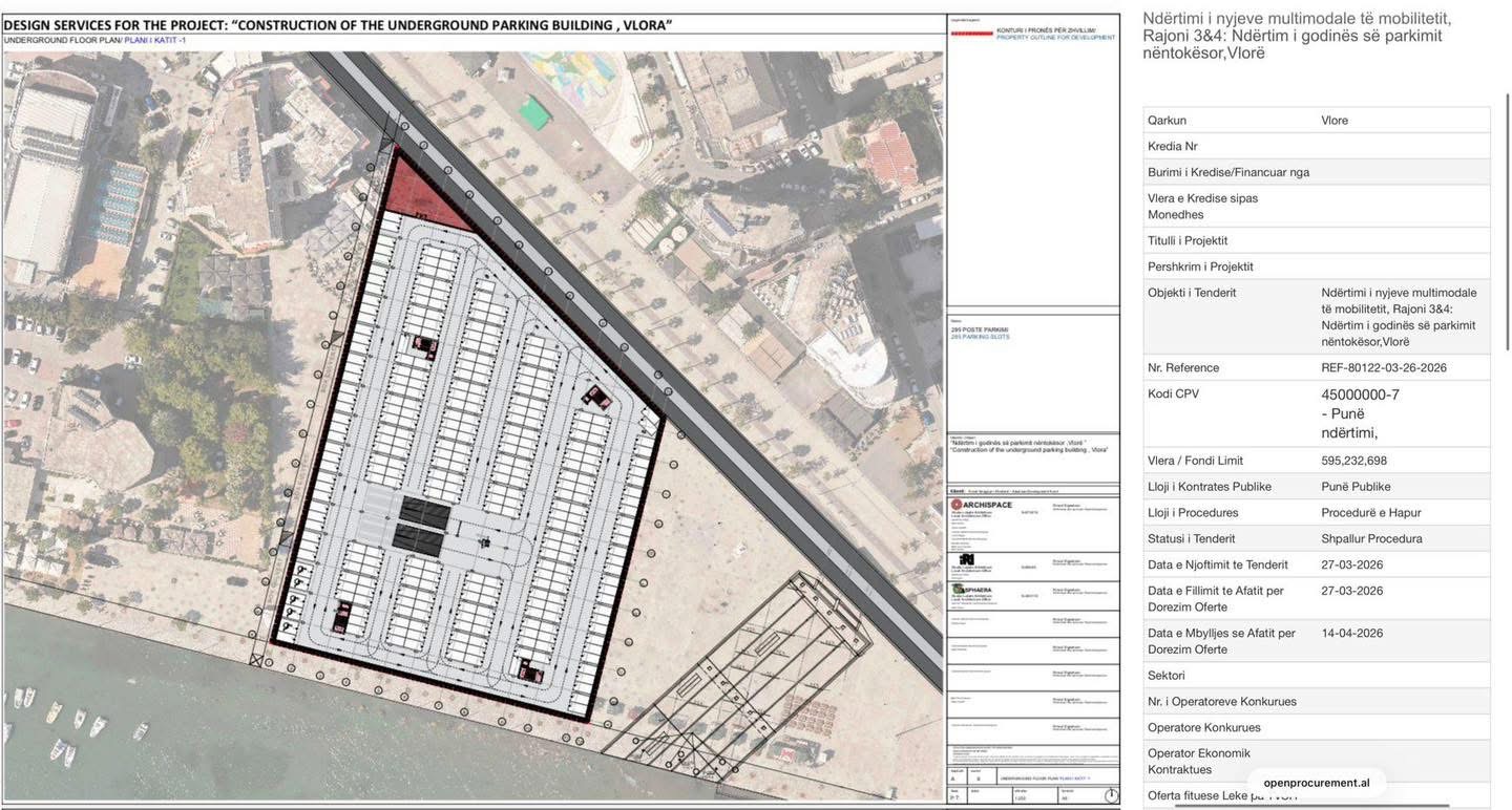 Sipas projektit “Construction of the Underground Parking Building, Vlora”, struktura do të ndërtohet plotësisht nën tokë dhe do të ofrojë rreth 295 vende parkimi, duke synuar lehtësimin e trafikut dhe adresimin e mungesës së hapësirave për parkim në vijën bregdetare.
