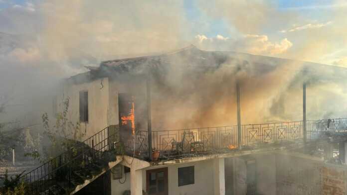 Një banesë dy katëshe u përfshi nga flakët pasditen e sotme rreth orës 15:00, në fshatin Kukur, pranë Gramshit.